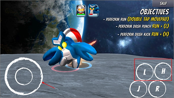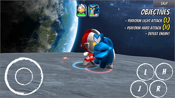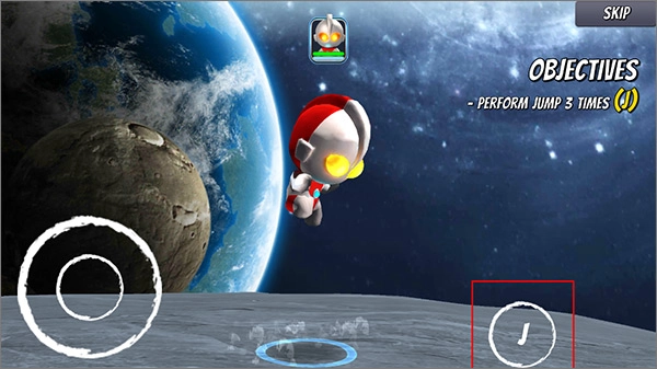 2、点击“I”按钮可控制奥特曼跳跃;