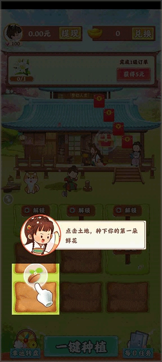 1、先安装好梦幻人生,进入游戏后,点击土地就能开启第一次种植啦。