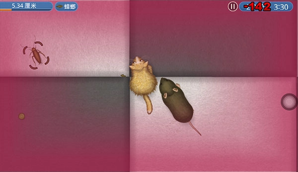 4、通过触屏操控猫咪移动,靠近体型比自己小的物体就能自动吞噬,像蟑螂、豆子这类都可以。