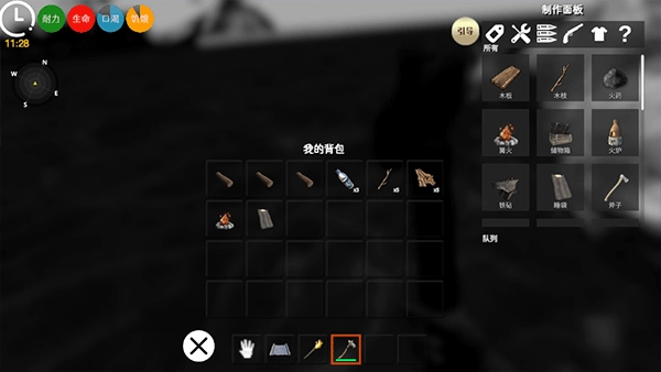5、左边的指南针能帮你避免迷路,收集到的物资可在背包里找到并点击使用,以此保障自身的基础生存需求。