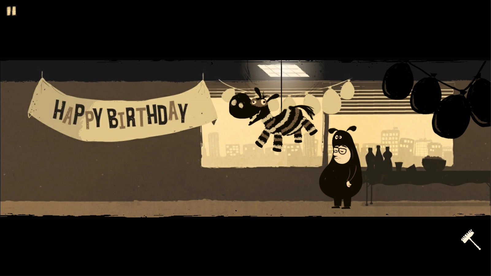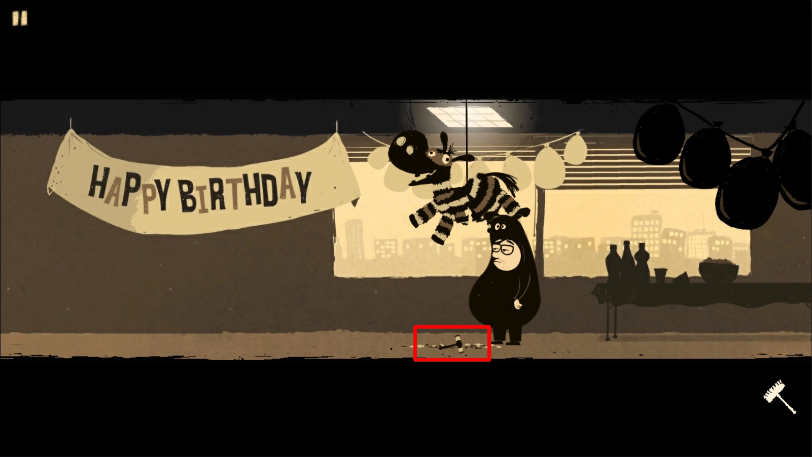 8、使用右下角的扫帚敲击玩具马。