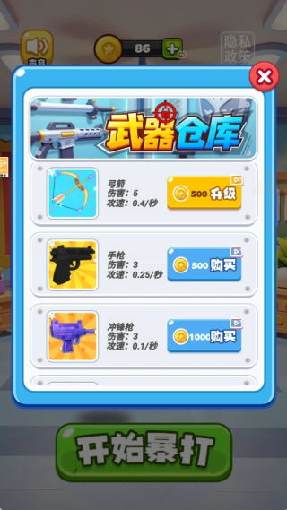 2、消耗金币可以解锁全新武器,也能对已持有的武器进行强化,从而进一步增强破坏效果,让战斗体验更加出色。