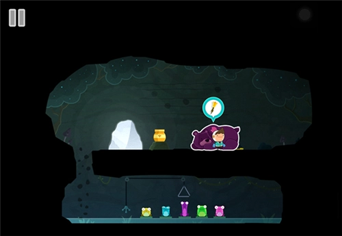 7、进入后,从左侧下去会看到一排青蛙,它们的叫声有高有低,需要按照熊上方的五线谱来排列这些青蛙。