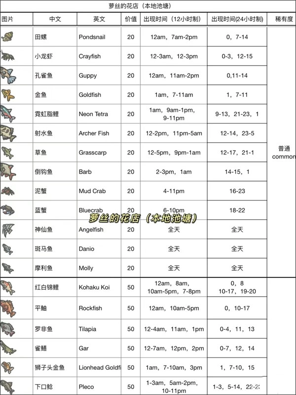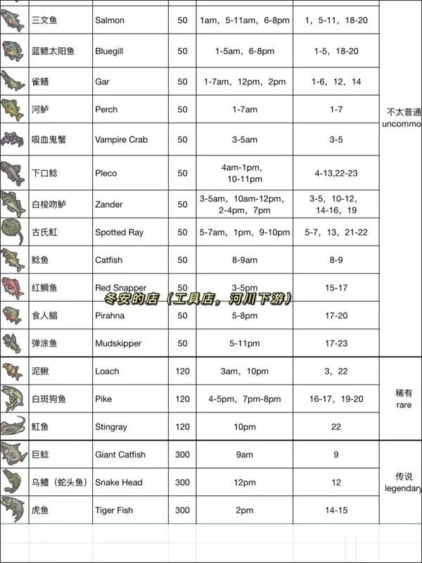 为了增加游戏的趣味性,开发团队特意加入了钓鱼系统,还准备了详细的时间表给玩家参考,大家可以依据不同的时间段来挑选想要钓的鱼种。对这类玩法感兴趣的朋友,不妨亲自去体验一下。