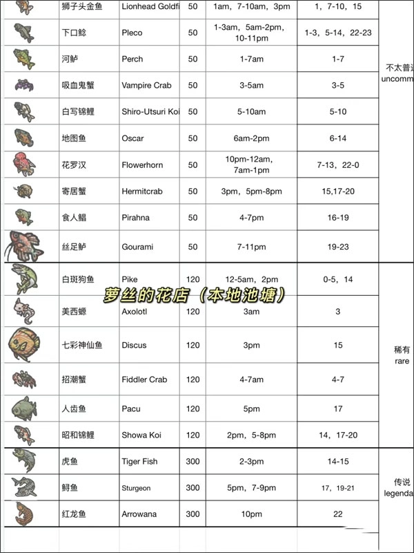 10、公告板上会显示高价鱼类的相关信息,要在指定的时间和地点进行垂钓才能获取(具体详情可以查阅下篇笔记)。