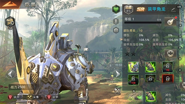 第三个要推荐的是装甲角龙,给它配备重甲后,战斗力会有显著的提升。在战斗刚开始的时候,它发起的冲锋能够打乱敌人的阵型,起到控制的作用。装甲角龙是近战类型的单位,拥有多种控制类技能,对于远程敌人可以进行有效的克制。