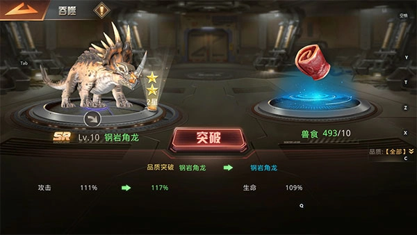第三种方式适用于紫色SR级巨兽。突破时能获得技能点奖励,这些技能点可用于提升品质,进而间接增强资质。尽管单次提升的幅度不大,但长期积累下来,效果会相当显著。