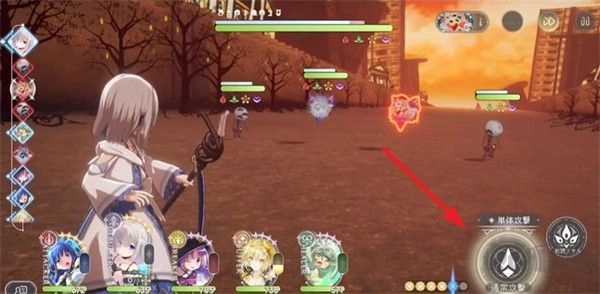 1、游戏的战斗采用回合制,最多可上场五个角色,选定一个角色后,点击右侧的技能按钮即可发动攻击。