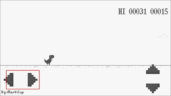 3、左下角的按钮可控制小恐龙奔跑的速度;