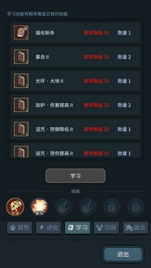 5、学习各类技能需要借助技能书,而技能书可通过刷图、开启宝箱等途径获取。