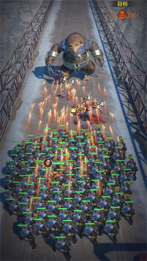2、进入关卡后角色会自动攻击敌人,穿过屏障或击碎油桶都能获取增强效果。