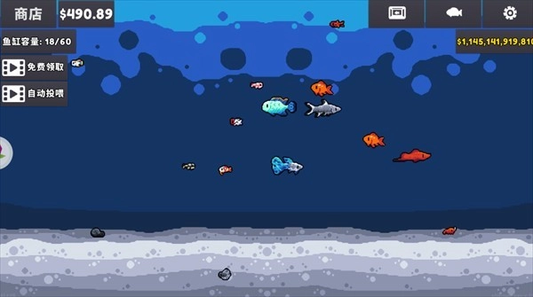 3、使用金币升级鱼缸,提升鱼的容纳数量;升级鱼食,能让鱼苗成长速度加快。
