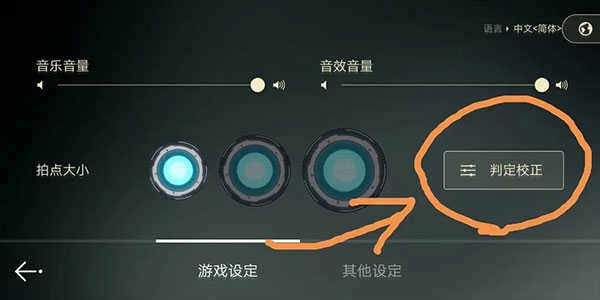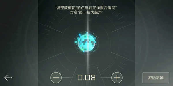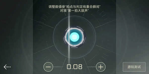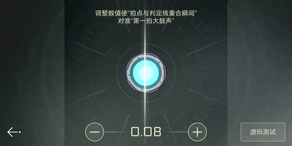 进入开始校准界面——相关说明为:“通过调整数值,让拍点与判定线重合的瞬间和第一拍大鼓声精准对齐” 。