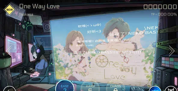 但无论难度如何提升,优质的游戏体验始终是各层级玩家最直观的感受。雷亚为玩家提供了Easy、Hard、Chaos三种难度模式。操作上,三种不同尺寸的拍点设计,能让不同设备上的玩家都能舒适地敲击屏幕。校准系统则支持根据个人节奏习惯调整判定点,从而打造出专属于自己的Perfect判定。