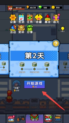 2、成功抵御僵尸的入侵后,界面上方会显示当前的僵尸波数,下方则会呈现城墙的剩余血量。