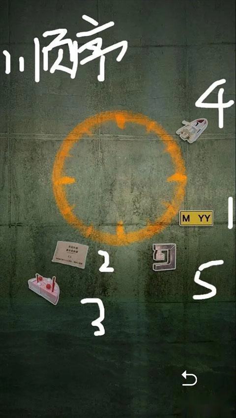8、这时候你可以看见个圆,每个物品在物体表面和CG都有直接提示,根据合同上的数字按照钟表逆时针排序密码锁。