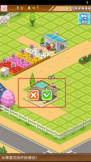 3、选择建筑位置后,点击对勾按钮确认建造,若位置不合适可点叉号取消,完成设施的铺设布局。