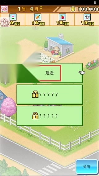 2、在农场界面点击【建造】按钮,解锁建筑类设施,逐步解锁隐藏的建造选项,拓展农场功能。