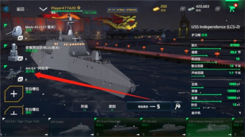 3、部分战舰的购买既需要消耗货币,还设有等级门槛,不过购买后能解锁更多武器与玩法。例如图中展示的这款战舰,玩家购入后就能体验驾驶ah64阿帕奇战斗机参与战斗的乐趣。