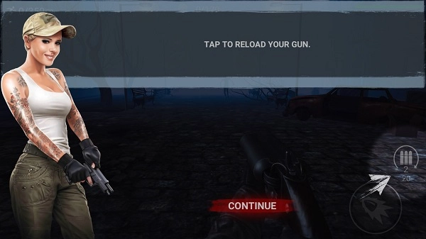 7、技能:别让僵尸近身,紧急时点击左侧脚蹬按钮踢退僵尸;