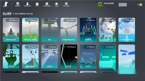 1、进入游戏首页,这里为玩家准备了十分丰富的玩法模式,选择你想体验的游戏模式并点击即可,比如surf模式;