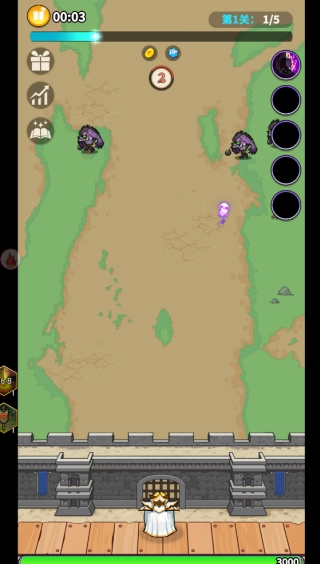 1、打开英雄防线游戏进入战场,操控英雄在城墙上迎战小怪。