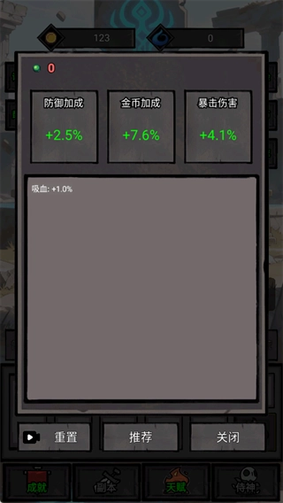 优先选择【金币加成】类天赋,提升资源获取效率,后期再补防御、暴击类属性。