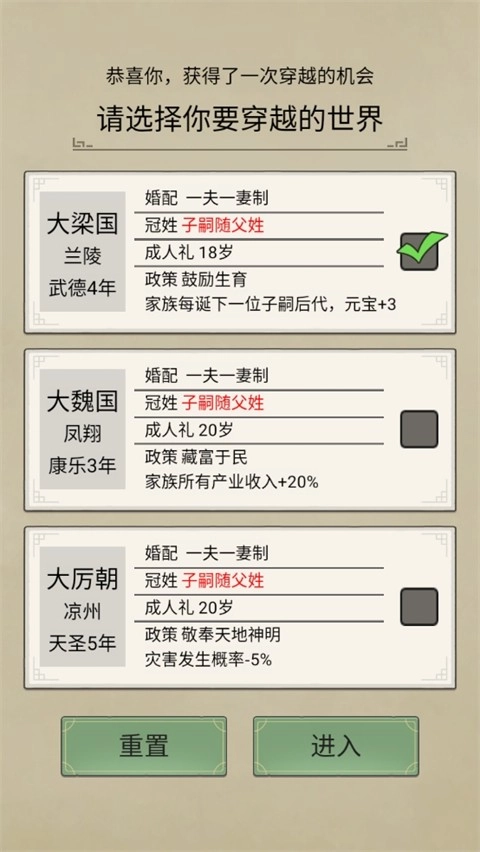 5、深度的家族经营玩法:玩家需妥善规划家族成员的工作与生活,订立家族规矩,以此维系家族的兴旺发展。这一设定让游戏拥有了更强的可玩性与挑战性。