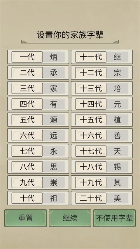 3、查看并确认角色属性,包括天资、姓名、体魄、文才、武艺等,如不满意可点击 重置。