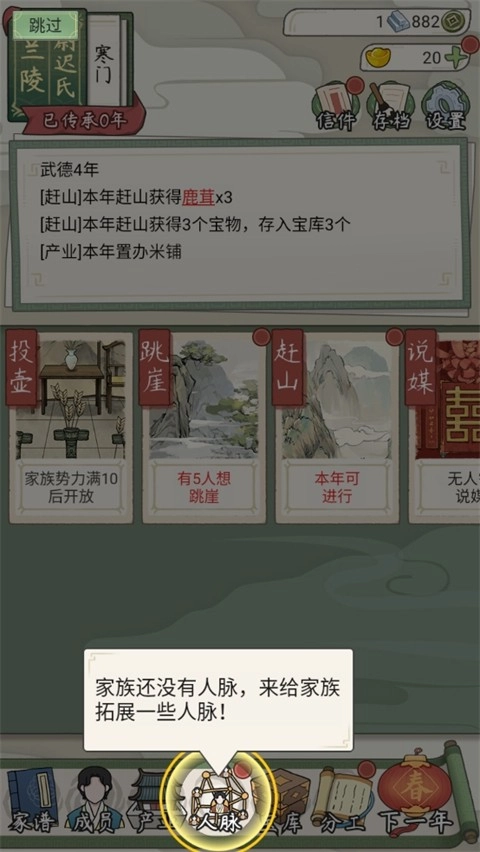 12、进入 人脉 页面,点击 拓展,为家族积累更多资源和关系。