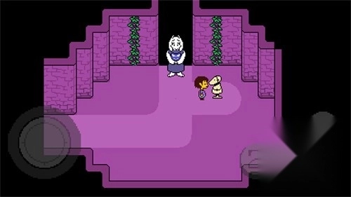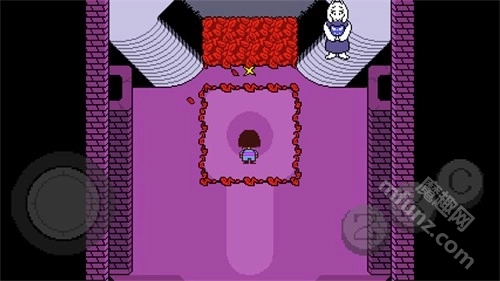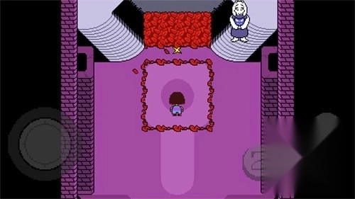 2、跟随Toriel前往遗迹入口,花丛处设有保存点。进入北面的房间后,Toriel会解开谜题。