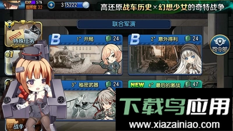 钢铁华尔兹是一款二次元动漫风格的手机游戏,游戏把历史上的坦克都塑造成了萌娘形象,玩家可以指挥这些被称为“钢舞姬”的角色投身军事对抗。游戏采用了大量的live2d技术,能展现出细腻精美的动态画面,还模拟还原了多种不同的战争场景,让玩家在战斗中既能获得视觉上的愉悦享受,又能体验到策略布局的乐趣。