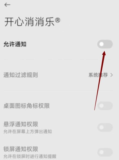 4.进入消消乐的通知设置界面,关闭“允许通知”功能,这样就能开启免打扰模式了,具体操作可参考下图。