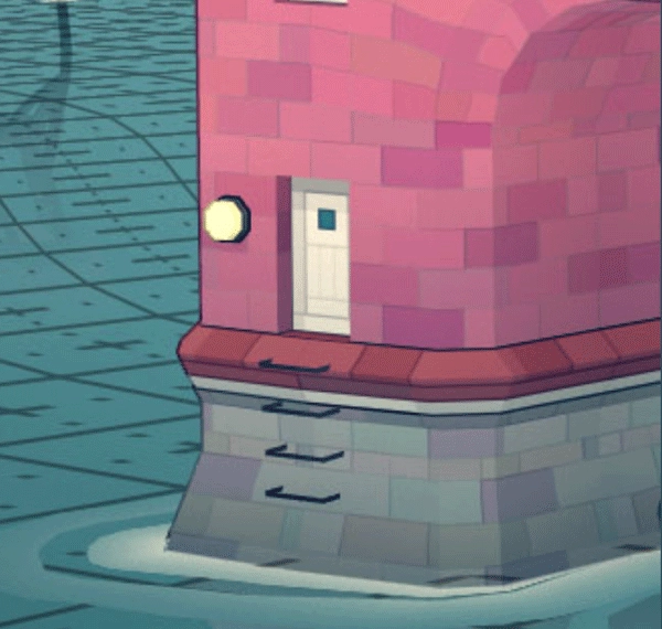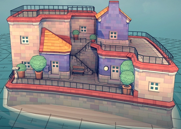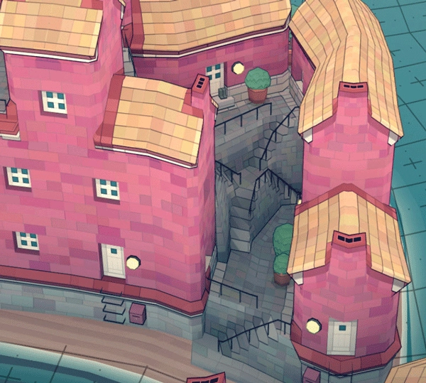 ②要保证房屋的颜色存在差异。要是采用相同的颜色,缺口上方那栋房子的底部就会有脚手架显现出来。