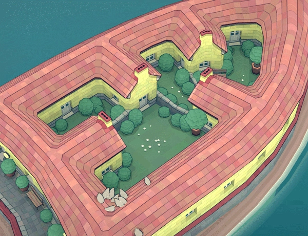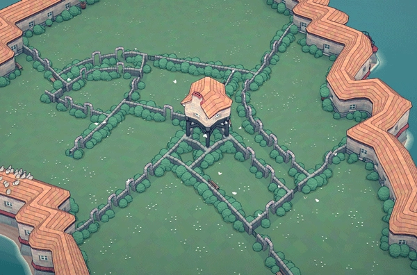 花园/田野内建造几座彼此靠近的建筑物,即可生成石墙,石墙样式取决于周围结构的形状和大小。