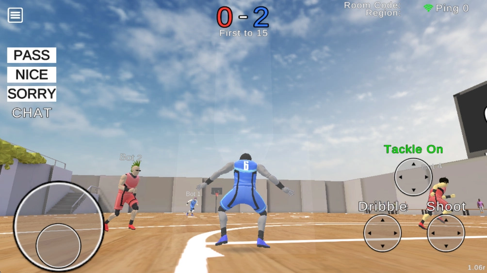 1.熟悉基础操作逻辑:新手要先掌握移动、运球、投篮这些核心操作。比如,持球的时候点击右边的“Dirrble”按钮就能运球过人,靠近篮筐时点击“shoot”会触发上篮或者扣篮,而左边摇杆的精准操控是突破防守的重要点。