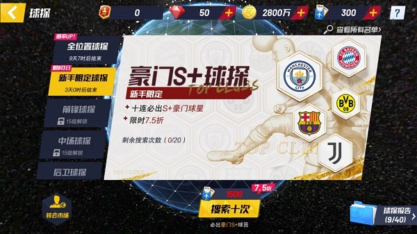 豪门对决:想要积累球员情报,得备好1名S级球员和1名S+或CL级球员来兑换。