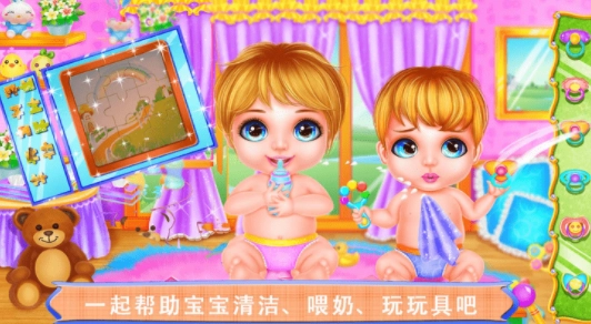 有一款面向儿童与青少年群体的休闲游戏,核心玩法是为一对双胞胎角色进行服饰创作,最终让他们能在舞台上呈现出与众不同的风采。