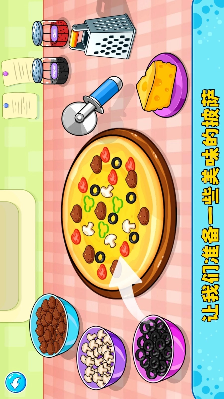 在切蔬菜的关卡里,通过滑动屏幕来操控刀具,将蔬菜切割成要求的形状和大小。