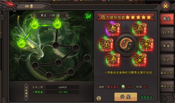 游戏设有技能、神威、强化、符文等多个特色系统,构成了丰富的玩法体系:技能系统借助技能书提升等级,每满10级即可激活对应属性;神威系统通过完成任务积累神威值来升级,从而获得属性加成;强化系统依靠挖矿所得的强化石对装备进行强化;符文系统则通过击败boss获取符文并进行镶嵌,以此增加合击伤害。