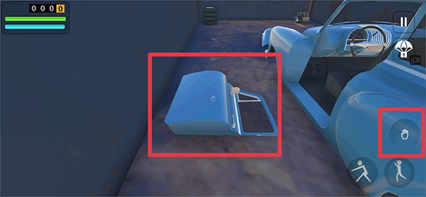 在游戏里,玩家得先把汽车的全部零件都装到车上,通过点击手掌形状的按钮来完成拾取操作。