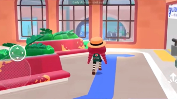 滑动左下角的虚拟摇杆来操控角色移动,右侧分布着奔跑、跳跃、互动等功能按键,你可以在小镇里自由地尽情探索。