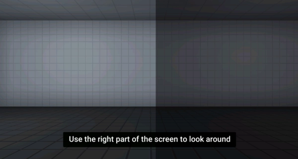 根据操作在第一个拐弯处调整前进方向,并向四周进行查看