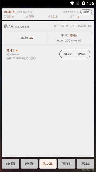 11、招募的武将可以在游戏下方的队伍进行查看;