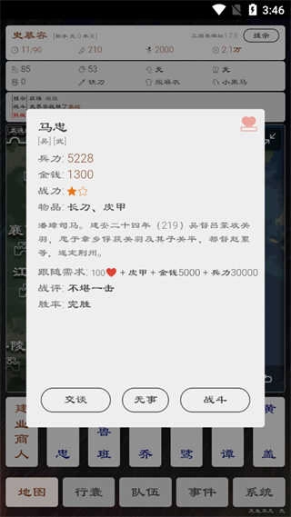 6、玩家可以点击下方的武将名字来进行战斗和交谈;