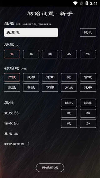 3、游戏中玩家需要设置所属地、初始地和属性,点击开始游戏进行游戏游玩;