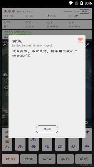 8、和其他武将交谈可以获得好感度;