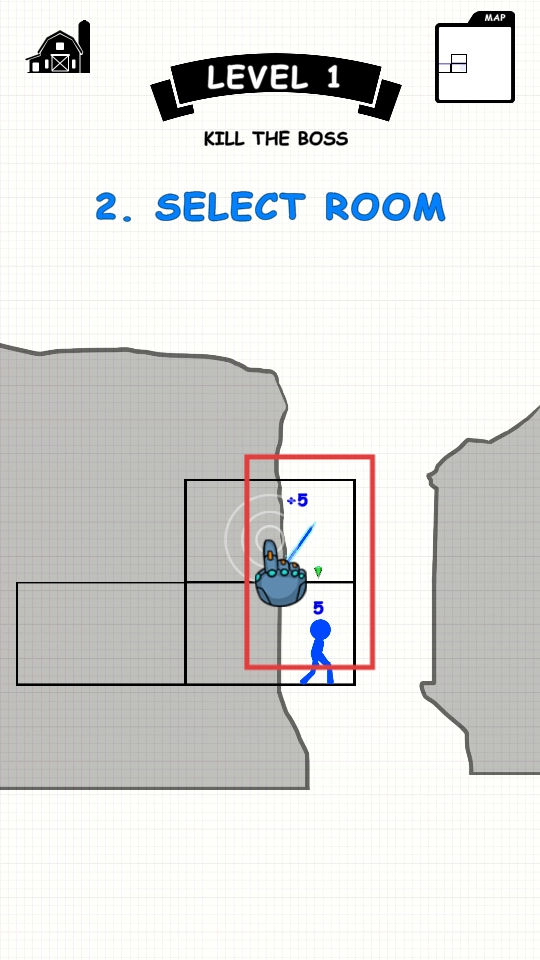 选择带有增益的房间,部署英雄推进关卡。