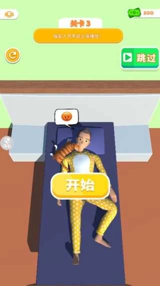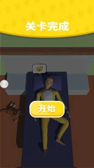 每个关卡都设有倒计时挑战,玩家得在时间用完前把所有干扰睡眠的因素都清理掉——不管是吵闹的闹钟、念叨的妈妈,还是透过窗帘照进来的阳光,或是爱捣乱的宠物,都得统统赶出卧室。