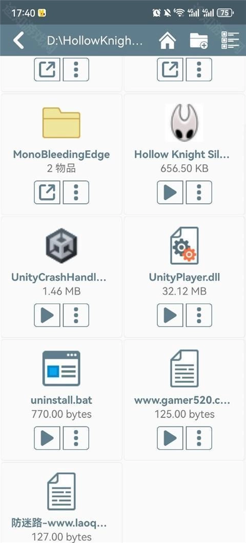 解压操作完成后,回到之前的界面就能找到游戏所在的文件夹,接着从中选中名为“HollowKnightSilksong.exe”的文件就行。